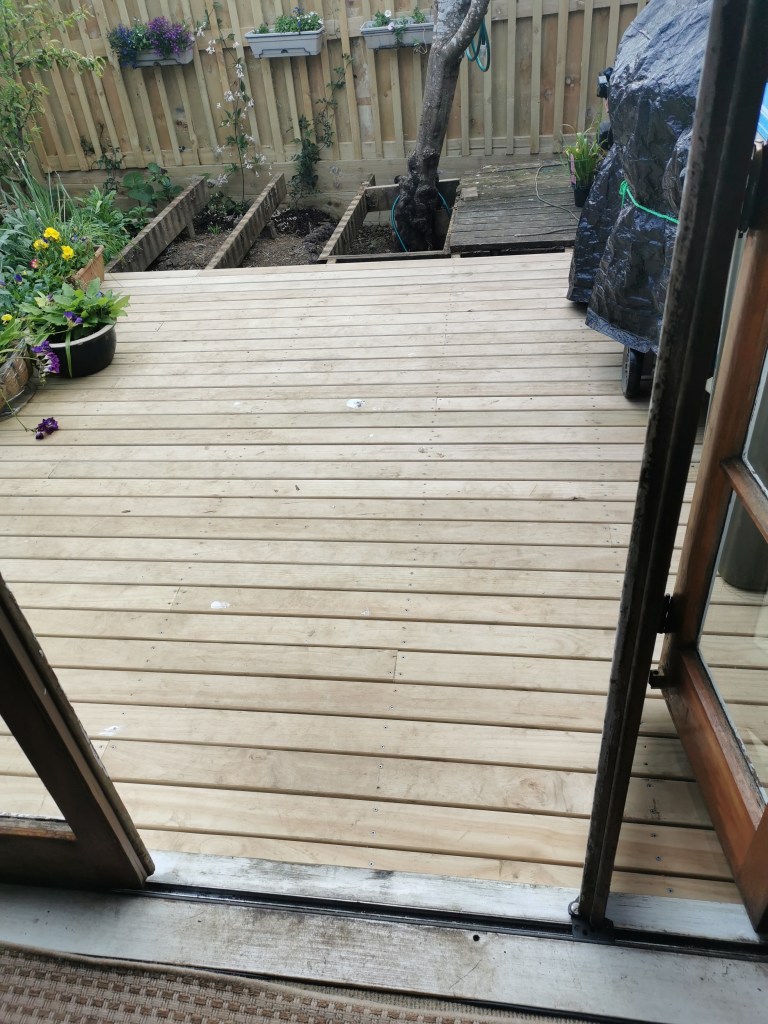 New Zealand has been very lucky with how it has controlled and managed the Covid outbreak. Sadly our luck ran out back in August this year. With the weather starting to improve but not yet fine enough for an extended period, replacing the surface timber on our deck was a task to be completed. But, Mr. Murphy had other ideas. We ordered the timber on Tuesday for delivery Thursday only to have Auckland placed into a snap lockdown on Wednesday, and there we have remained. However, a slight easing of restrictions five weeks later allowed our timber to be delivered finally. It felt really good to have completed the project together.