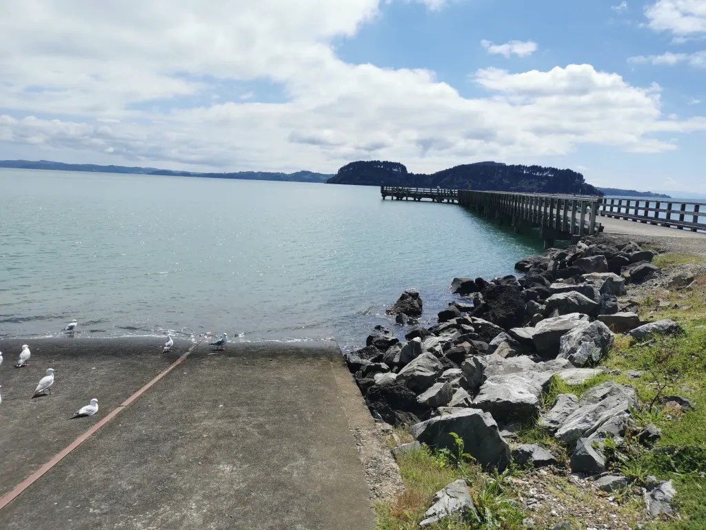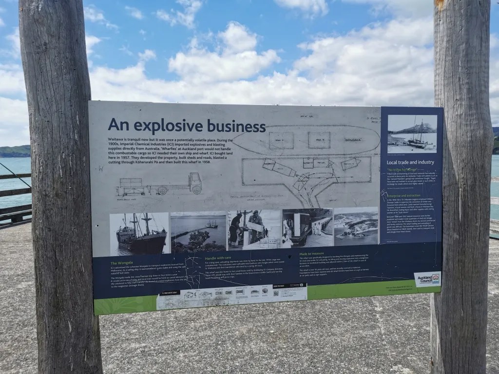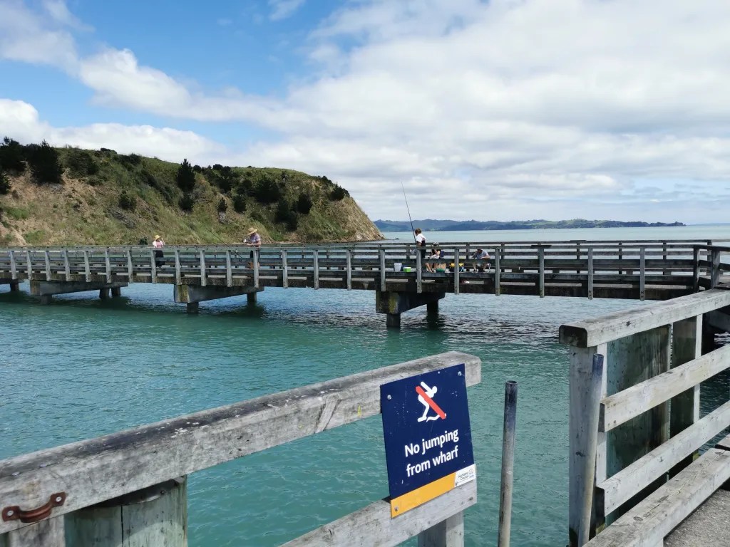 On the other side of the small headland from the beach is the wharf they built in 1957 to unload the explosives since the Auckland Harbour wouldn’t unload them. To construct the wharf they dynamited through the remains of a Maori Pa creating the roadway you can see in the above photo. Can you imagine the outcry if someone tried this today, but I guess things weren’t as well monitored in those days. There were quite a few people fishing from the wharf but nobody seemed to be catching anything. Still if you don’t have your line in the water what hope do you have.
