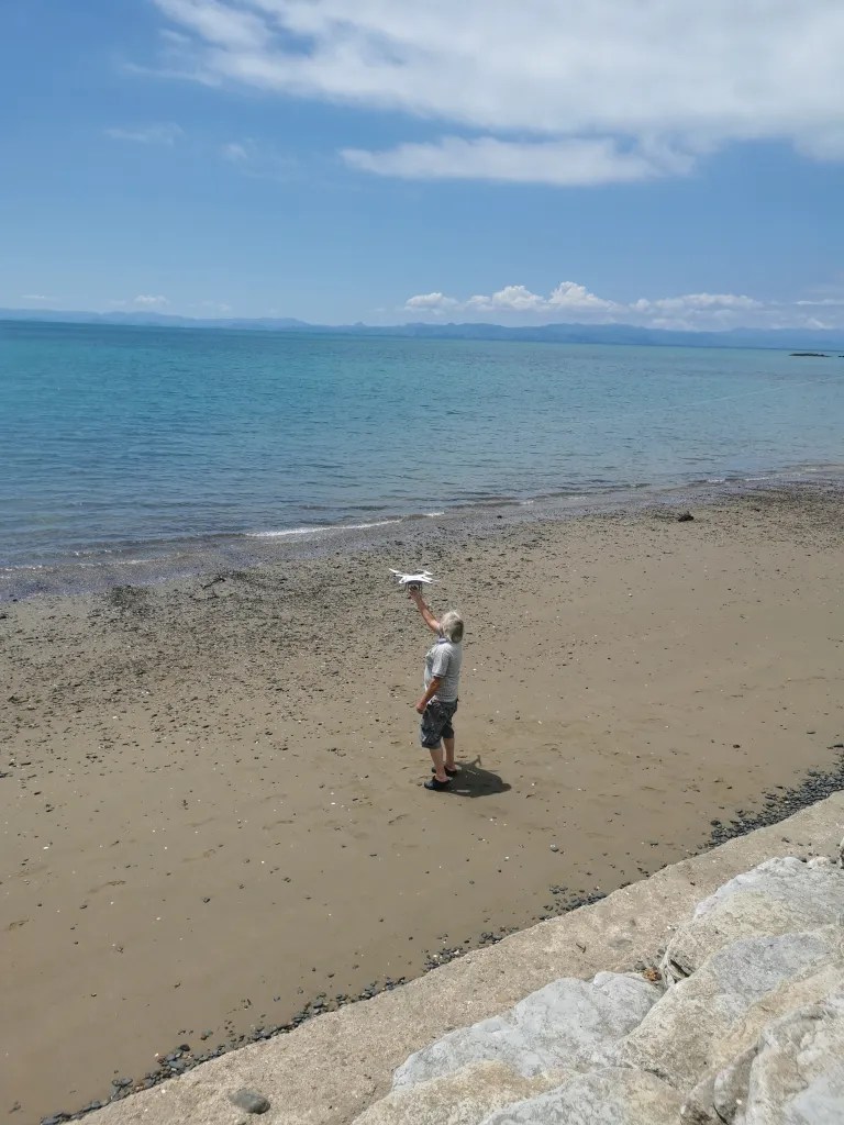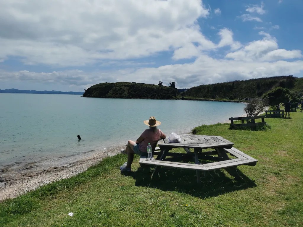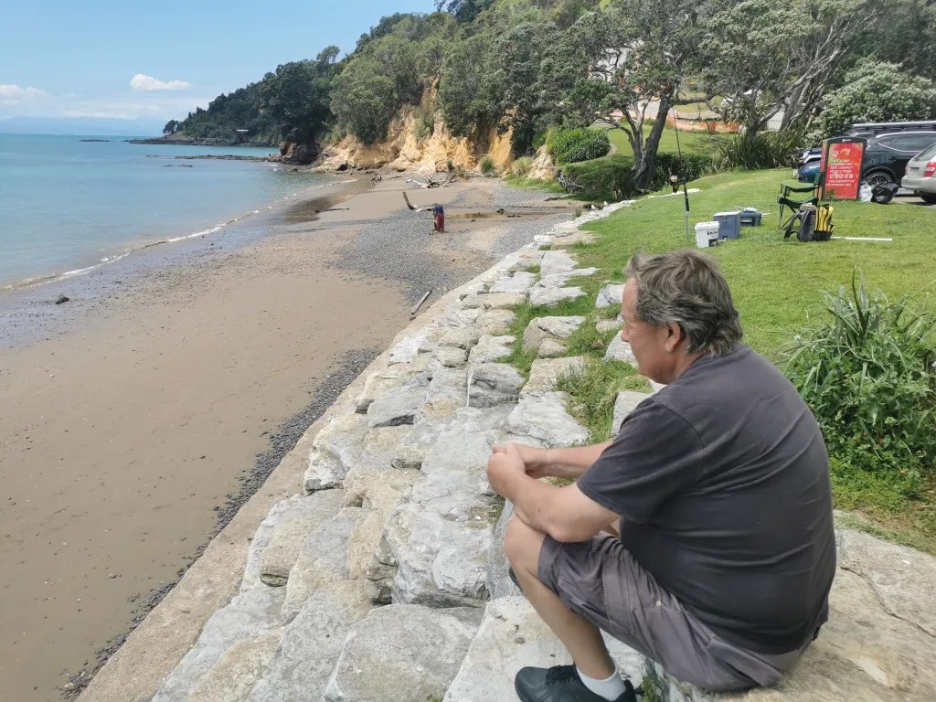 From the Waitawa Regional park we drove out to Kawakawa Bay and followed the road out past the boat ramp. Here another really narrow road continues on for about three kilometres where it dead ends at a small reserve. We sat at the breakwater and watched a couple of people using drones to get there fishing lines out. While we watched the man in the photo above wound in with two very small fish that he returned to the sea and then relaunched his line with the drone. He told me that his set up set him back around $1000 but I have heard of people spending ten times that and more. The other fisherman was learning to use his drone and provided great entertainment with his efforts learning how to use it.