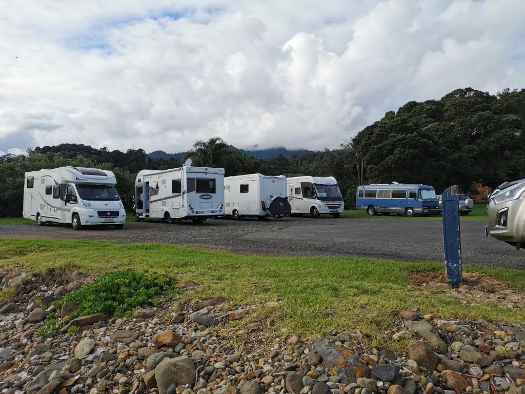Coromandel town is really well set up for freedom camping with a number of spots set aside in the local carparks. My favourite one, I think the one that backs onto the local stream providing a very pretty outlook especially during autumn. There also appeared to be quite a nice Park Over Property (#1957) located just out of town in Hauraki Rd but since it was a grass surface this wasn’t the time of the year to be staying there.