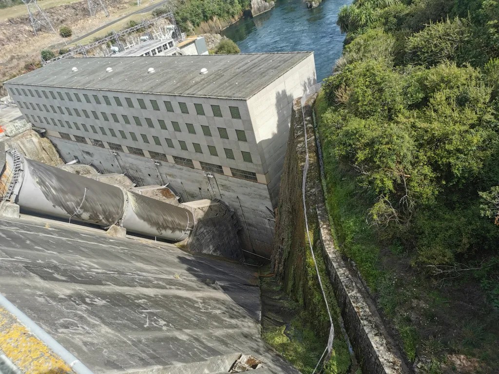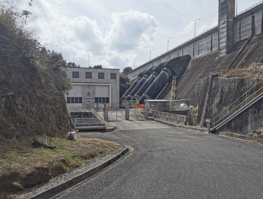 Once the sun had properly risen and breakfast had been consumed it was time to stretch our legs in the other direction. It’s about a three kilometre walk from the campsite to the Whakamaru Dam. Once we had crossed over the dam we wandered down to have a closer look from the bottom. I don’t know if it’s fully automated these days but there wasn’t a car or worker anywhere to be seen. I know this is just a small dam, but I do find them impressive especially standing at the bottom looking up.