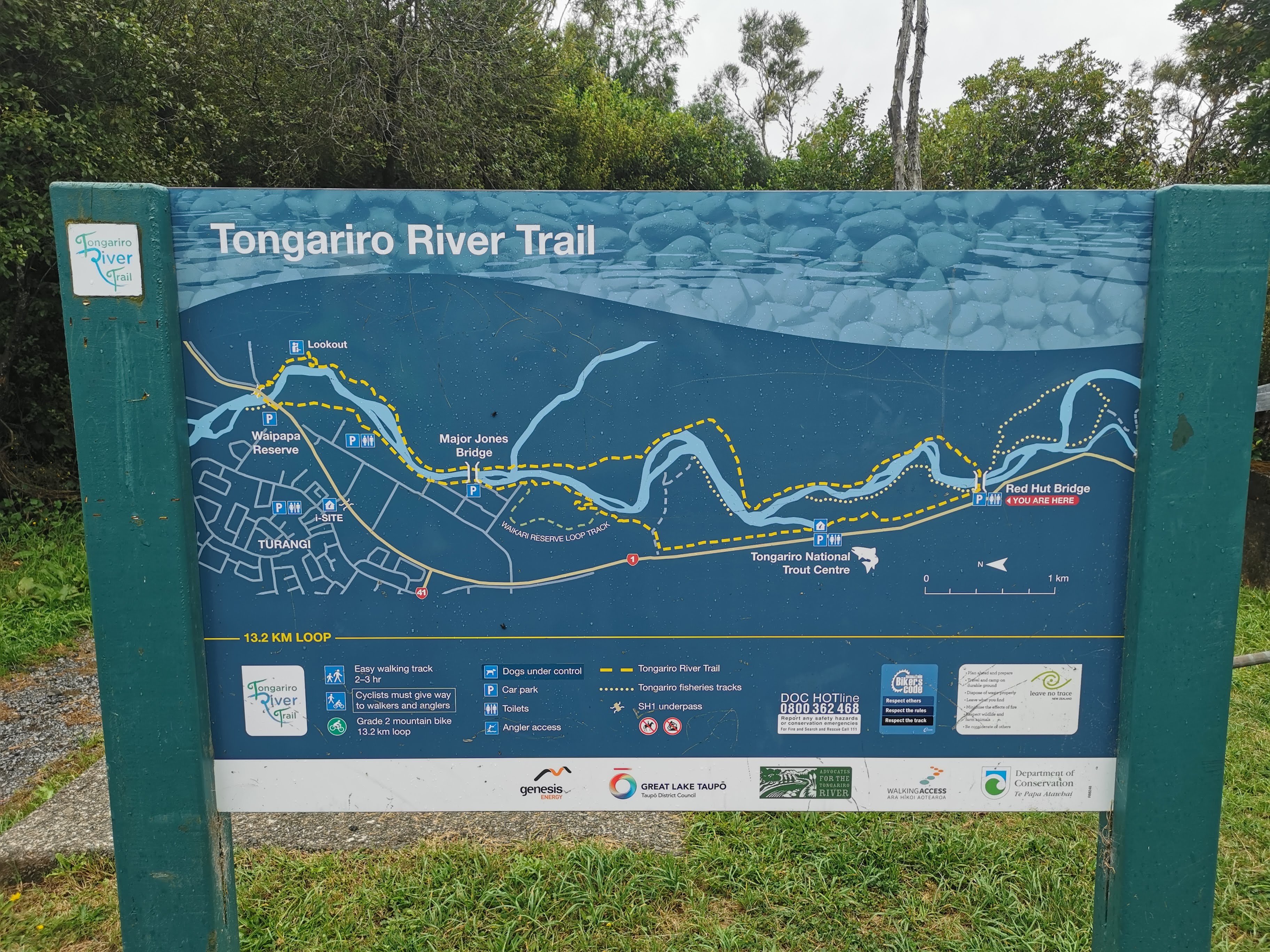 Turangi is another of those towns where unless you are into trout fishing you probably just drive through on the way to somewhere else. But we discovered as we did in Te Aroha that if you stop and explore then there is so much more to offer. As Google Maps has improved what it displays over the years, both Sarah and I find it a great source of being able to see what’s around us, when in a new town. So, it was this time, with the Turangi River Trail showing up on the map. A quick look showed over fifty positive reviews (another important consideration) and some great photos of the trail.