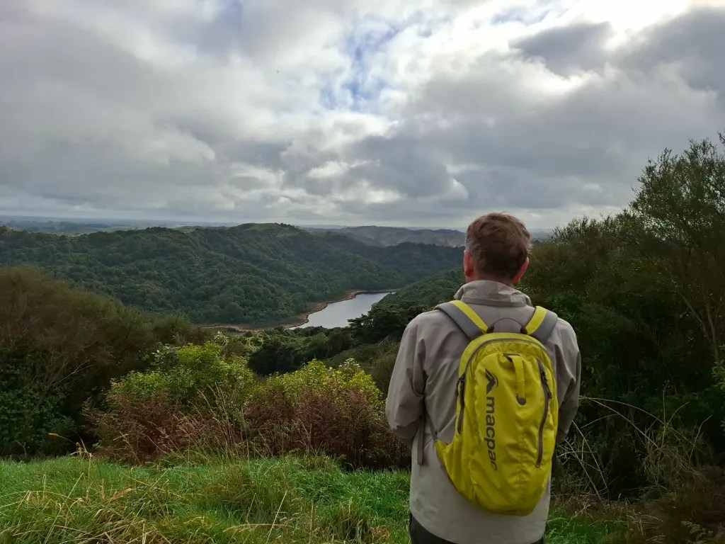 Yes it’s quite a hike to the top of the ridge but once you get there it’s a fairly easy walk along the ridgeline before starting the descent back to the lake. One thing that I was sort of expecting happened as we ascended, with my phone “pinging” multiple times with new messages having been most of the previous day without a connection. Thankfully nothing more pressing than one of our sons wanting to know why he couldn’t get hold of us. In most areas the track is in really good condition with gravel steps at the steepest points and very few areas of mud, so I really don’t know what the people the previous day were talking about. The sign at the bottom says the walk is two and a half to three and a half hours and we easily walked it in the two and half hours. There are a couple of areas on the track that provide a great view of the lake below but I would describe it as more of a walking track than a scenic one. Because it follows the fenceline the only real bush walk is the descent, but that is very pretty and well worth the steepish climb.