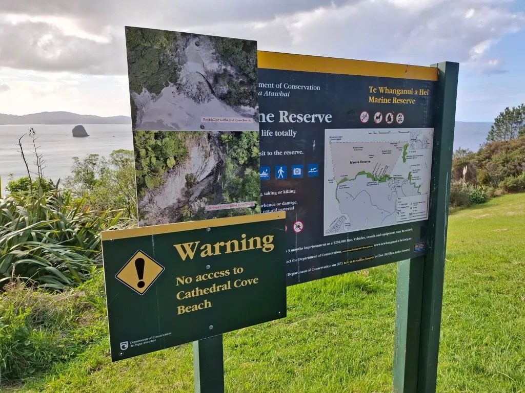 I visited Cathedral Cave with two of my sons back in 2017 but Sarah had never been there and was keen to have a look. We both knew the track was closed but thought there might be a nearby viewing point. With this in mind we wandered up the hill to the entrance to the track. Here two things became obvious the carpark at the top looks like it will never reopen, and the track was definately shut. With the carpark closed the only access to the cave track once it re-opens, will be either by walking uphill as we did. Or by leaving your vehicle in the massive carpark at the entrance to the village, where a bus will take you up and run you back down from the track. I have read that the track will reopen in December 2024 although ongoing work will still need to be done to finish it.
